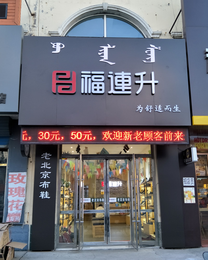 在此,福連升健康休閑中年鞋(原福連升(原福聯(lián)升)老北京布鞋)全體員工祝賀:福連升中年鞋內(nèi)蒙通遼市科爾沁左翼中旗寶龍山鎮(zhèn)二店開(kāi)業(yè)大吉、生意紅火、財(cái)源廣進(jìn)!誠(chéng)邀各地有志之士加盟合作,共享輝煌!