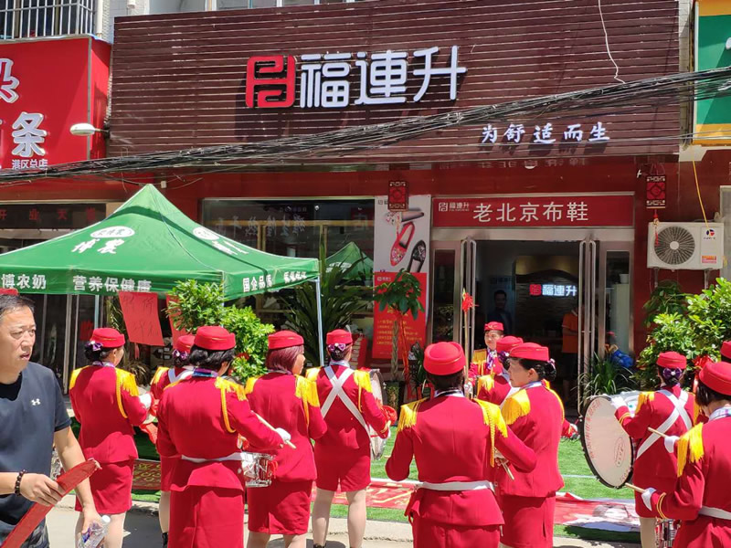 在此,福連升健康休閑中年鞋(原福連升老北京布鞋)全體員工祝賀:福連升中年鞋河南鄭州薛店鎮(zhèn)新店開業(yè)大吉、生意紅火、財(cái)源廣進(jìn)!誠邀各地有志之士加盟合作,共享輝煌!