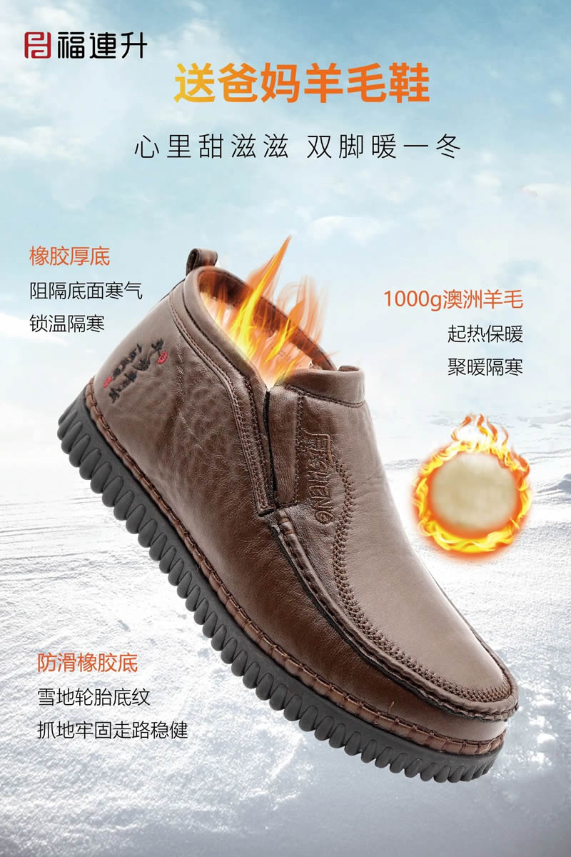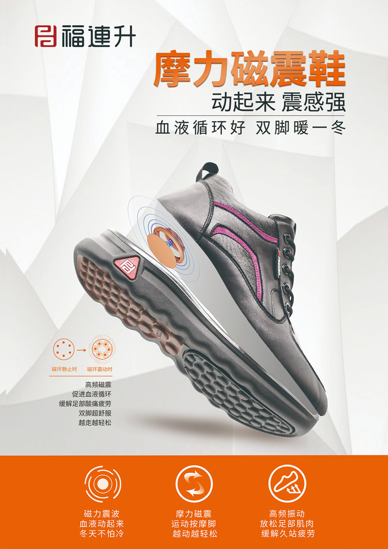 福連升冬季新品打破鞋品科技新思路,專業(yè)研發(fā)特別推出黑科技摩力磁震鞋、保溫暖冬羊毛鞋、安全生活止滑鞋、無懼污漬防水鞋四大板塊冬款新鞋品。