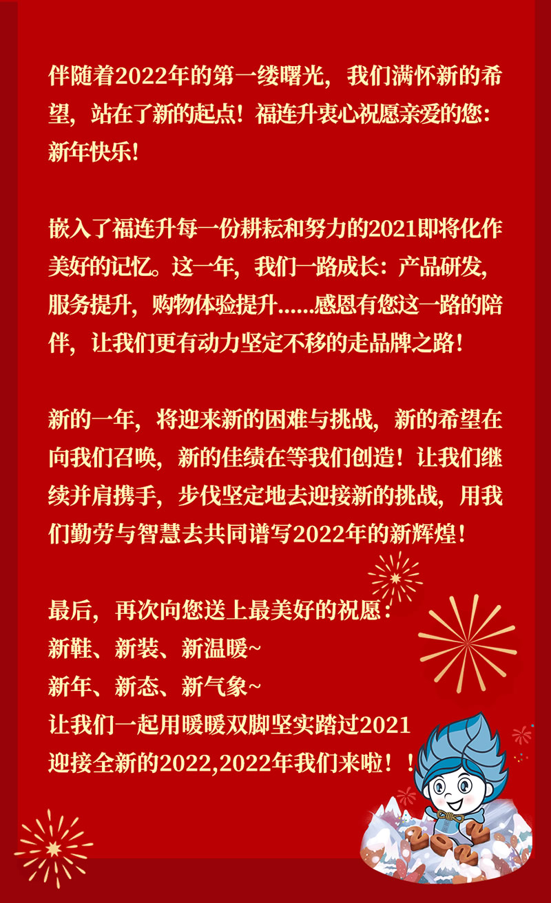 • 福連升祝全國(guó)人民新年快樂(lè)!2022不忘初心,堅(jiān)定品牌之路!